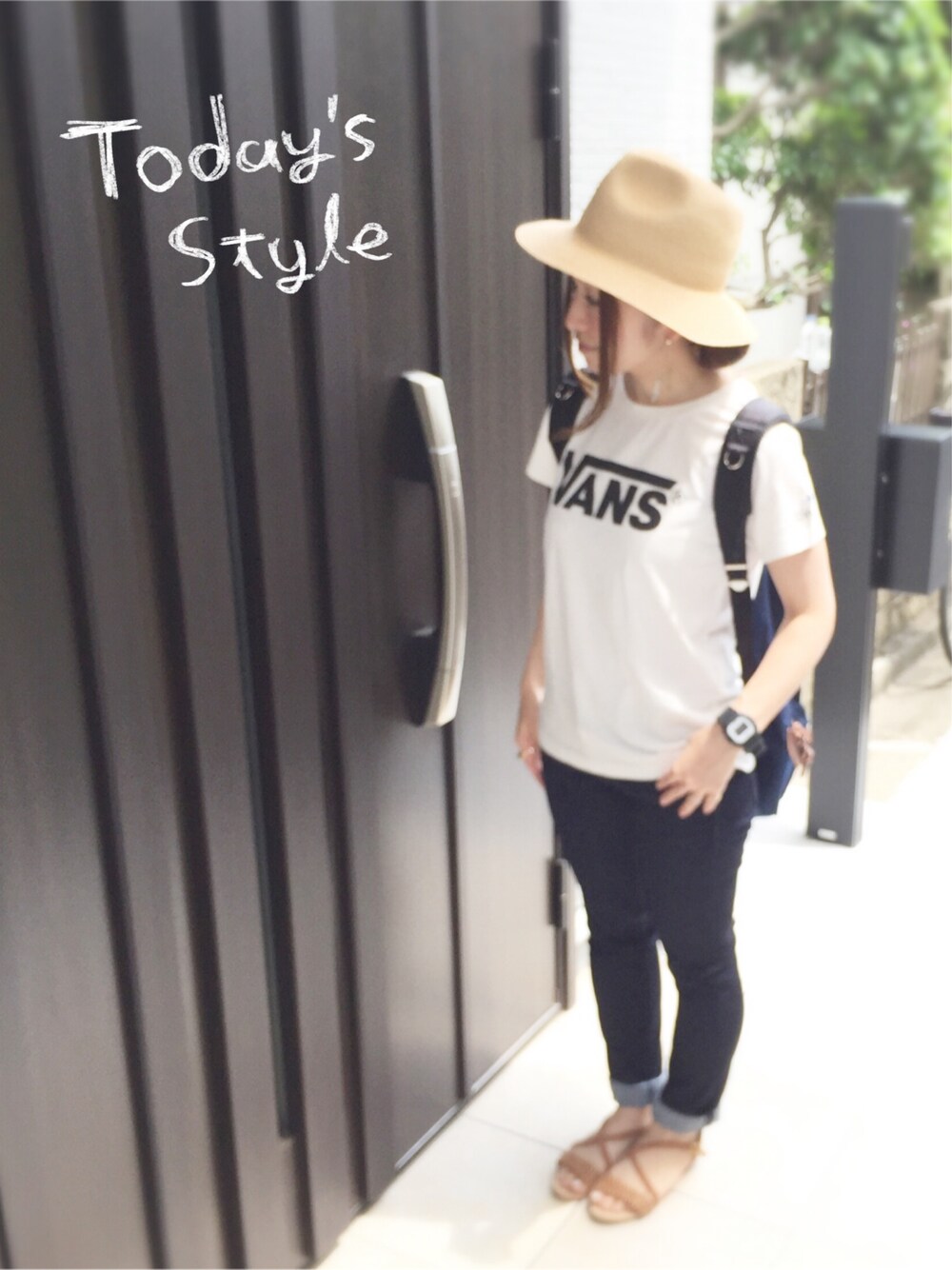 2015.06.14❥ Today's code❥ ハット❥ AnotherEdition ピアス❥ mystic トップス❥ VANS × E hyphen world gallery ジーンズ❥ UNIQLO リュック❥ FREDRIK PACKERS 時計❥ MARGARET HOWELL × G-shock サンダル❥ mystic WEARのコーデで見て、めっちゃ欲しかったVANSのロゴTシャツをメインに\(◡̈)/♡