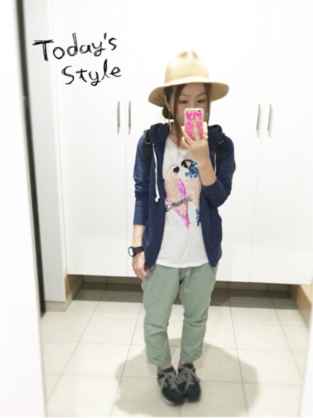 2015.07.09❥ Today's code❥ ハット❥ AnotherEdition ピアス❥ mystic パーカー❥ 無印 Tシャツ❥ H&M パンツ❥ AnotherEdition リュック❥ FREDRIKPACKERS 時計❥ MARGARETHOWELL × Gshock スニーカー❥ newbalance 今日のコーデ◡̈♡ 寒かったのでパーカーを羽織った(∗⌵̈)