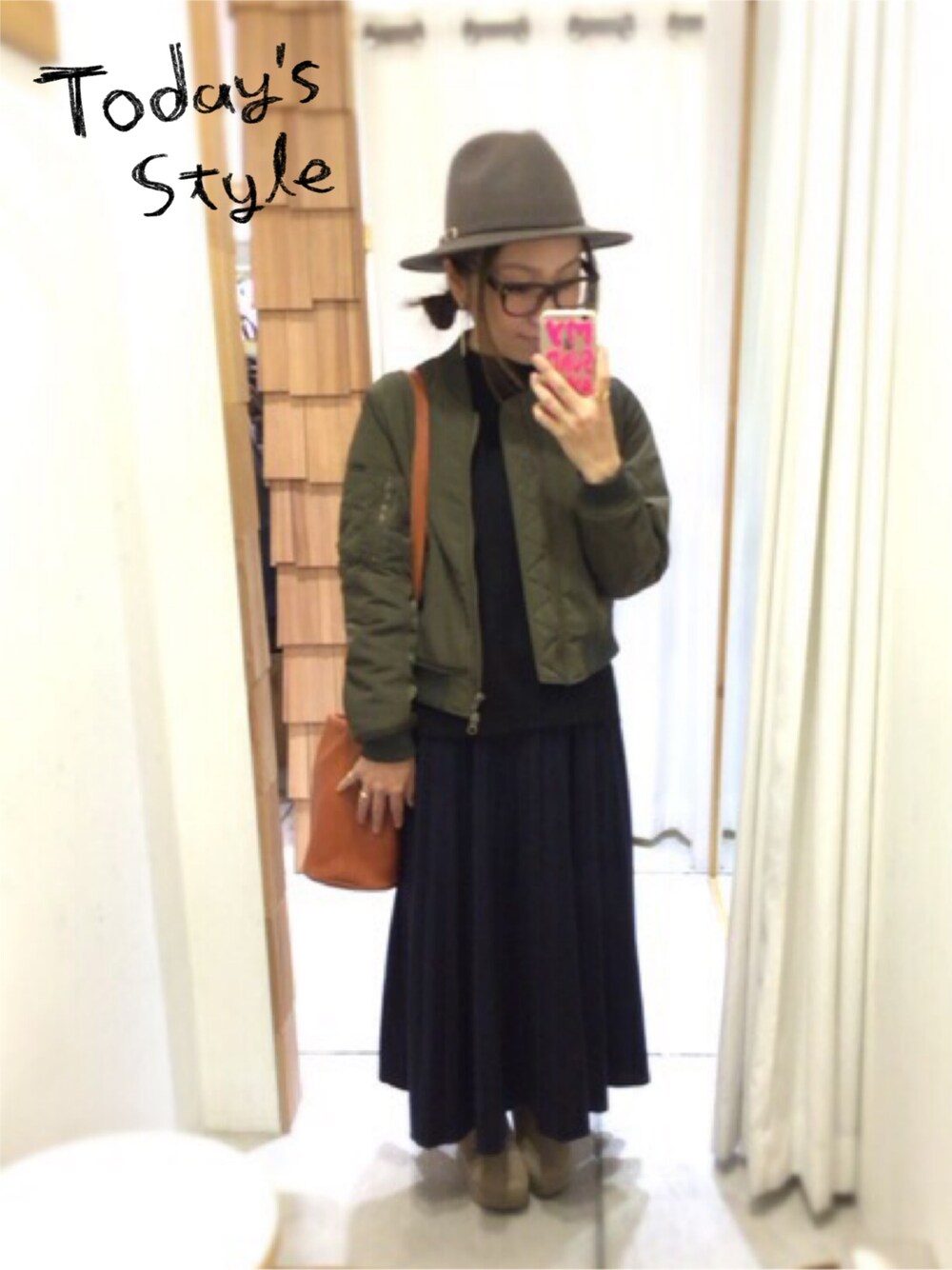 2015.11.01❥ Today's code❥ ハット❥ omekashi ピアス❥ mystic MA-1❥ anotheredition ニット❥ omekashi プリーツスカート❥ ciaopanic バッグ❥ ilbisonte ショートブーツ❥ kastane