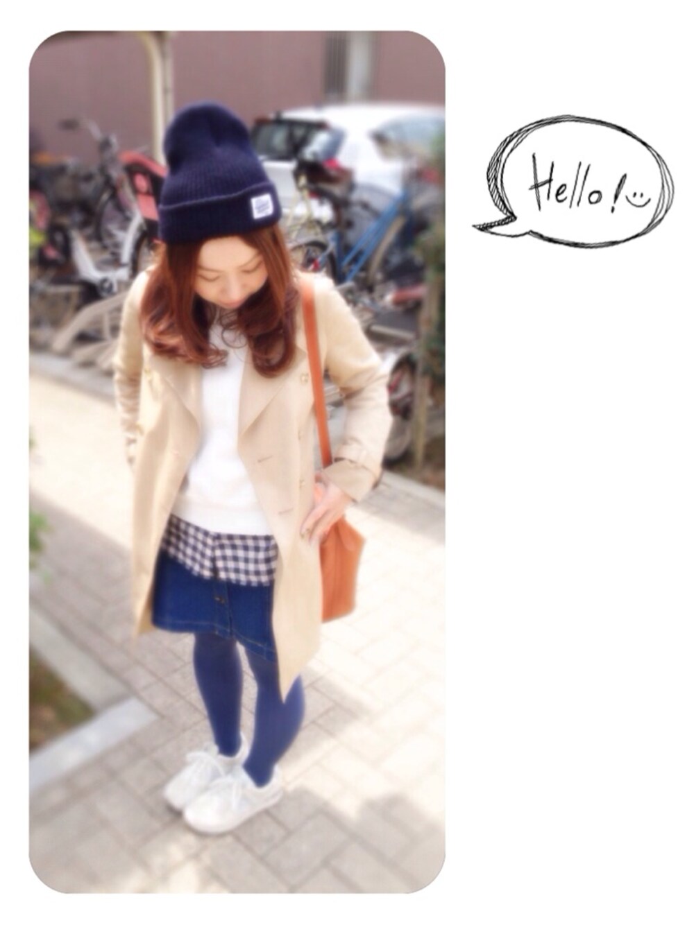 ニット帽❥ アナザーエディション トレンチ❥ ビューティーアンドユース スウェット❥ mystic omekashi シャツ❥ LEE スカート❥ しまむら バック❥ イルビゾンテ 靴❥ NB996 アナザーエディション