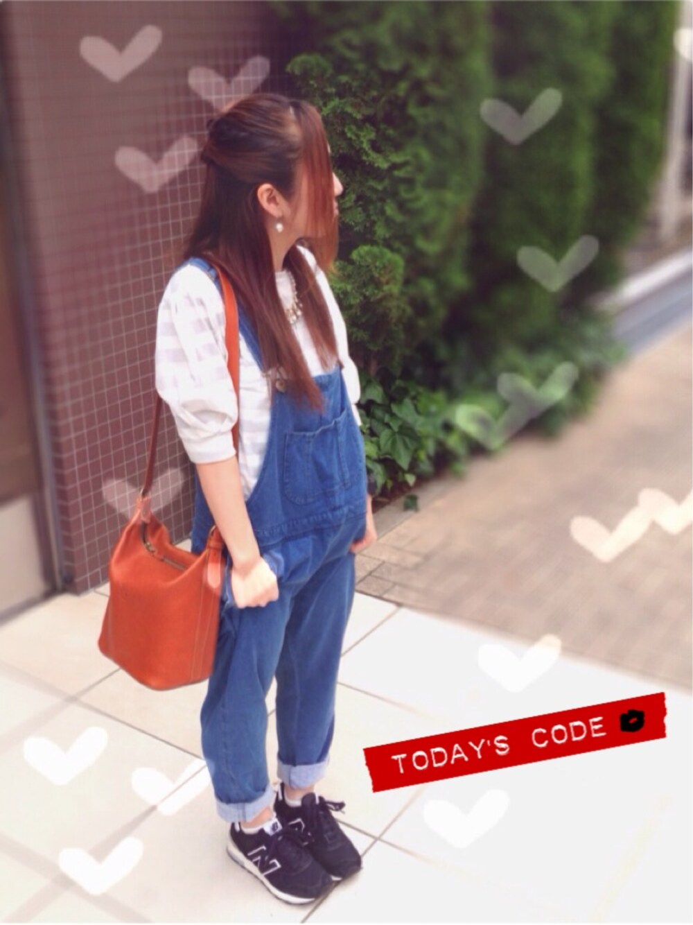 2014.05.25❥ Today's Code❥ * ボーダーカットソー❥ omekashi デニムサロペ❥ omekashi バッグ❥ イルビゾンテ ネックレス❥ mystic スニーカー❥ newbalance / BEAUTY & YOUTH