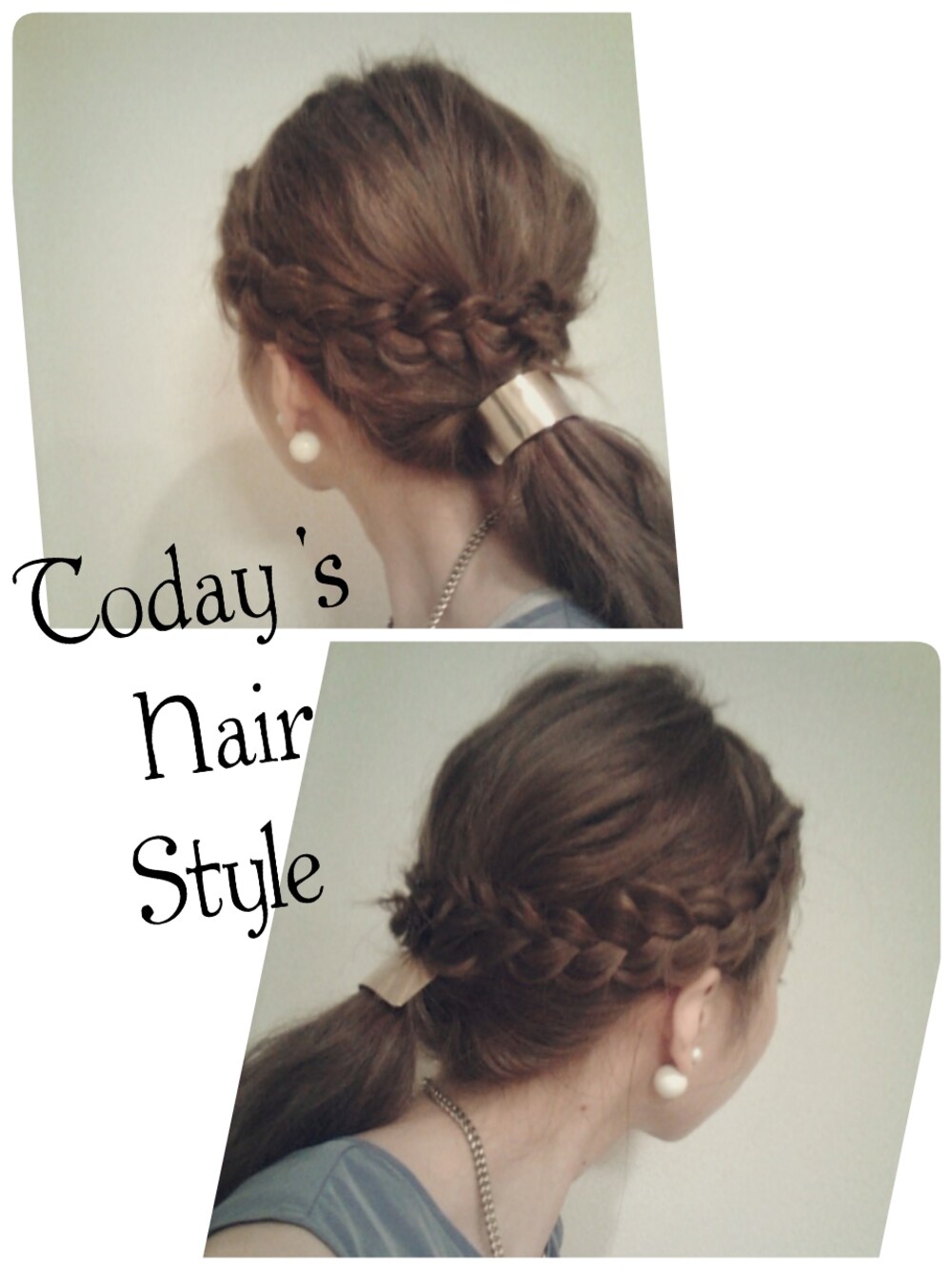 三つ編み留めただけ! 少しお洒落なひとつ結び。 もう少し伸びたらもっとイロイロできるのになーと。。。