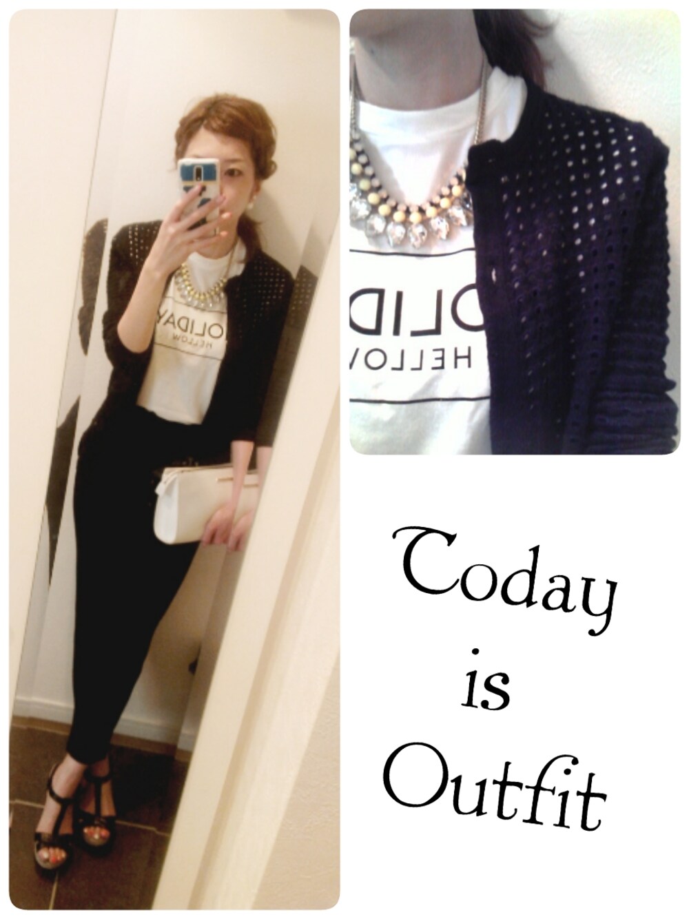 ショート丈トップスに、ハイウエスト。。。 厚底サンダルで脚長効果!! ダークカラーとカーデで少し秋意識。 韓国で買ったカーデはよく見ると穴あきで可愛いー♪ でも今年あまり履けなかったサンダルは履きたい(笑)