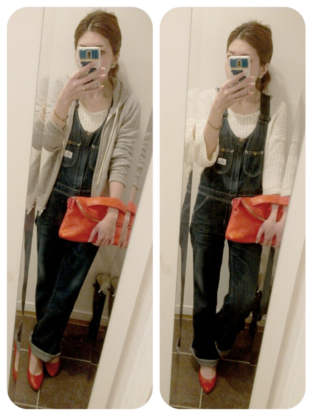 カジュアルすぎないよーに、足元はピンヒール。 Leeのワイドオーバーオール、お気に入り。