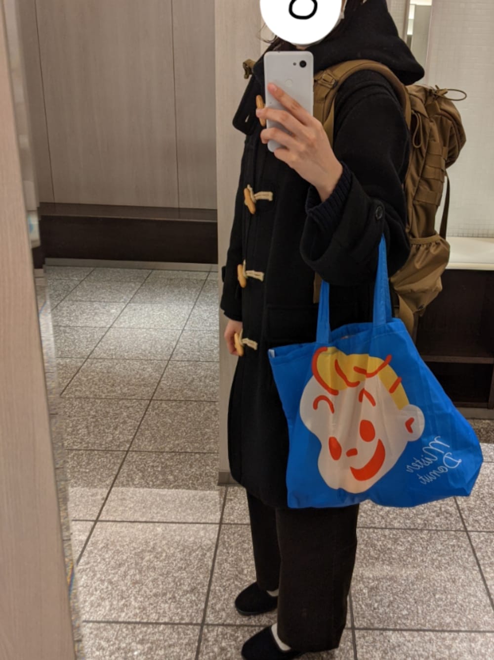 めちゃくちゃ昔からある黒のダッフル。ミステリーランチのラクダ色のリュックが映える〜☺️完全に男にならないように足元だけカンフーシューズ。またオサムグッズ買おうかと迷い中。
