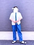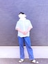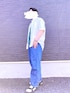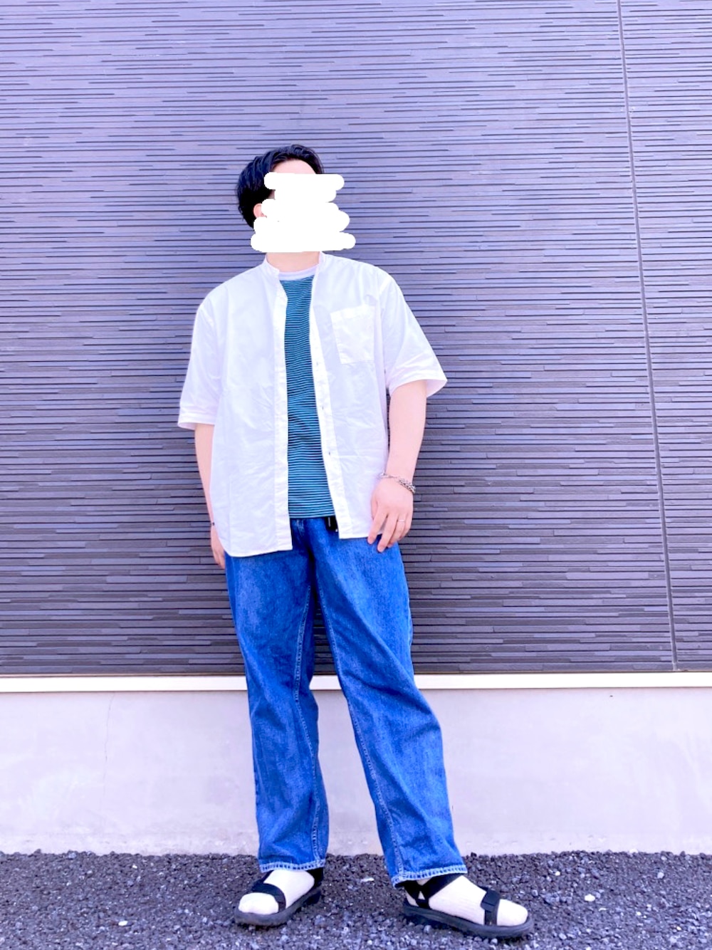 白シャツでさっぱり ワイドデニムで夏らしく 顔がむくみすぎたのでモザイクです tevaしか履いてない