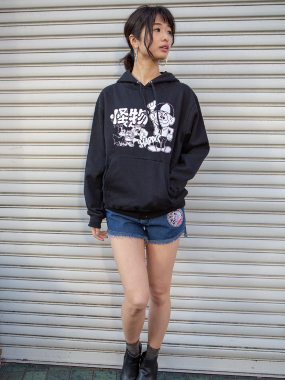 ハードコアチョコレートのパーカー「怪物くんプルオーバパーカ(念力集中ブラック)」を使ったコーディネート
