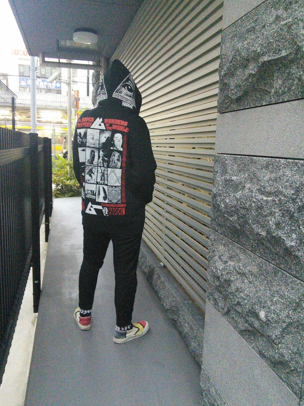 ハードコアチョコレートのパーカー「月刊 ムー 世界の16大不思議 ブラックパーカー -Super Mystery16 Wonders of the World PARKA EDITION-」を使ったコーディネート