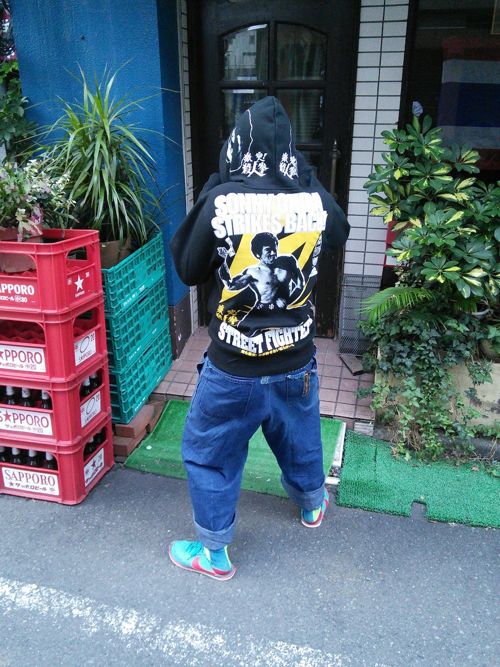 ハードコアチョコレートのパーカー「千葉真一×ハードコアチョコレート 激突!殺人拳(剣琢磨ブラックパーカー)」を使ったコーディネート