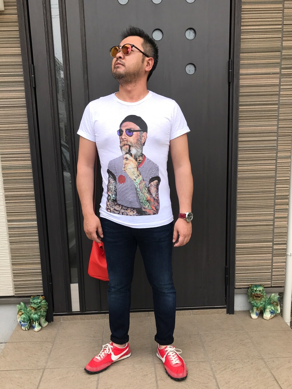 昨日のコーデなんですがいつの間にか暑くなってTシャツ1枚の季節になってきた😵 もう少しすると汗だくになるので着替えの服を持ち歩く状態になるな(笑)
