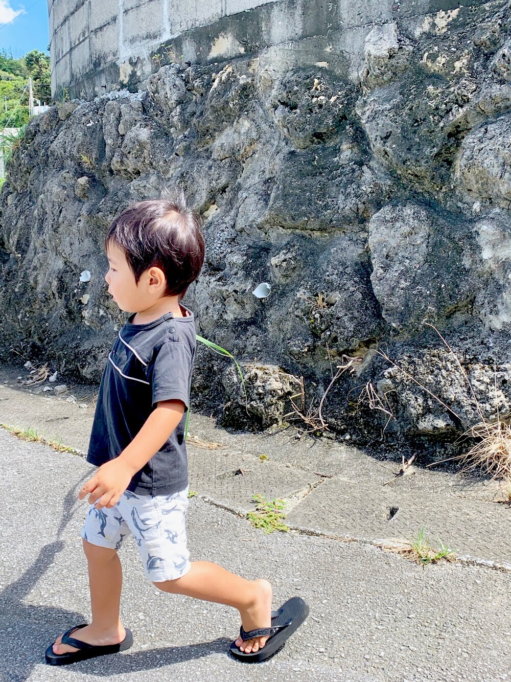 平日なかなか写真撮るの 難しいね、、 このTシャツ お下がりのお下がりなのに 全然クタクタにならない! 日曜はお散歩。 落ちてる葉っぱを片っ端から 拾って歩きました。