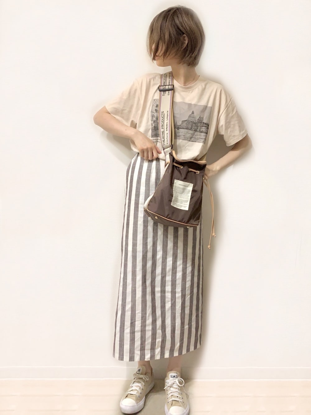 スカート麻素材なのでめっちゃ涼しいです🎐 太めのストライプが夏っぽくて良い◎ いつもいいね&お気に入りありがとうございます🐒🍌 良い連休を〜!(私は仕事にいってきます...)