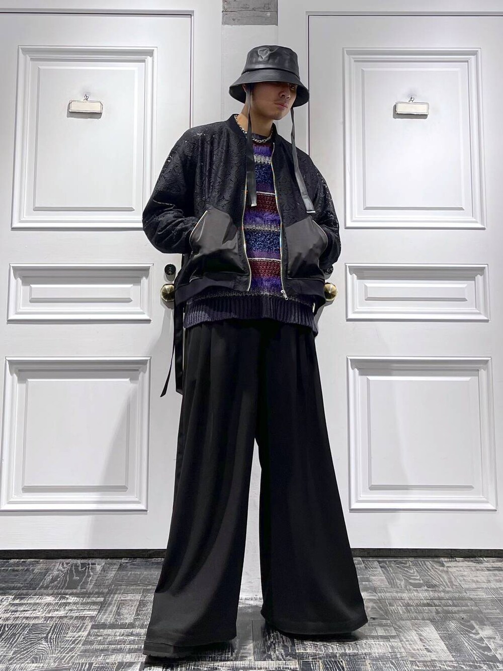 ◉ブルゾン◉ レース素材できれいめに着れるブルゾン!!スケスケだから夏にシャツ代わりにも着れちゃう!!中性的な雰囲気やフェミニンをスタイリングにプラスできる!✨ ◉ニット◉ 違う種類、カラーで切り替えたボーダーニット!!トレンドのラメ糸やファーを挟んでトレンドを取り入れつつ前衛的なデザイン!!春先の一枚着にもちょうど良いサイズ感とデザイン!! ◉パンツ◉ 超極太パンツ!!テロテロで落ち感のある生地で着心地も最高!!裾に向かって広がるAラインのシルエットが出るようになっていて、どの角度から見ても形えぐい🔥シルバーはナイロンでシャカシャカな素材!モードなスタイリングにピッタリ!!