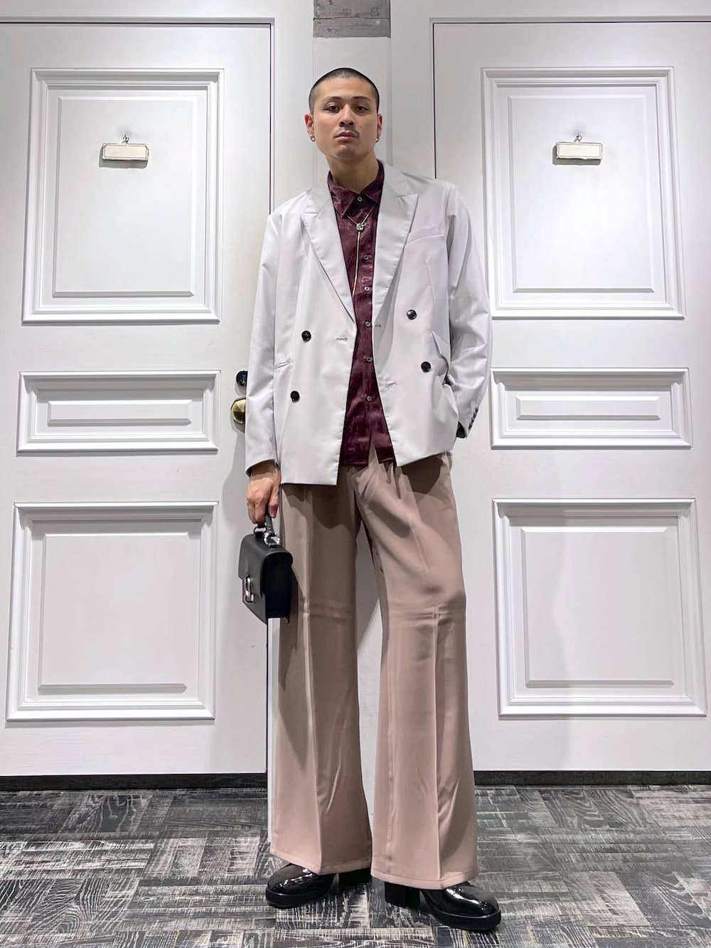 ◉ジャケット◉ 袖のファスナーで個性的な着方ができるテーラードジャケット!!インナーには、柄トップスや袖にデザインが入っているアイテムを入れるとよりオシャレに合わせられる🫡 ◉シャツ◉ 光沢感があり、高級感溢れるジャガードシャツ!!✨総柄シャツではありますが、派手すぎない落ち着いた柄なので非常に扱いやすい!!またシワになりにくく手入れも楽!!💪🏻 ◉パンツ◉ HAREと言えばのトロミ生地!!テロテロで落ち感があり、最高の履き心地!!🤤センタープレスが入っていて、若干フレアシルエットなので美脚効果も発揮!!🔥