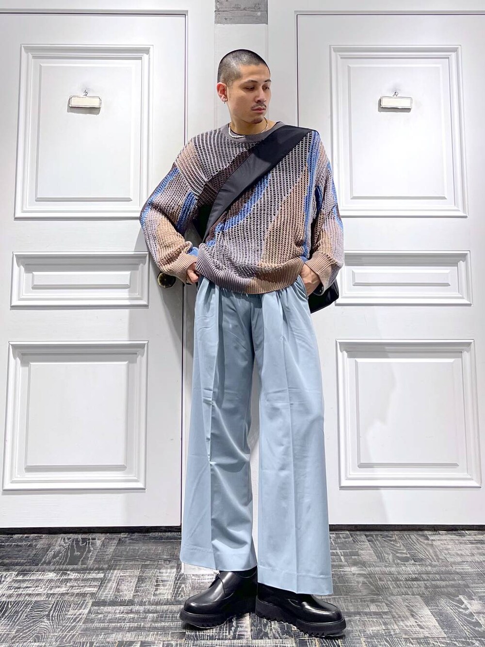 ◉ニット◉ 春夏はマスト!のメッシュニット!!HAREらしいマーブル柄で一枚着でもアウターやシャツのインナーに使っても良い汎用性の高いトップス!柄は目立ちにくく、モードな抽象柄なのでより使いやすく、合わせやすい! ◉パンツ◉ 程よい中太シルエットのワイドパンツ!!センタープレスで美脚効果👌🏻接触冷感素材で夏でも快適に過ごせる!!同素材のジャケットとセットアップで着るのもおすすめ!
