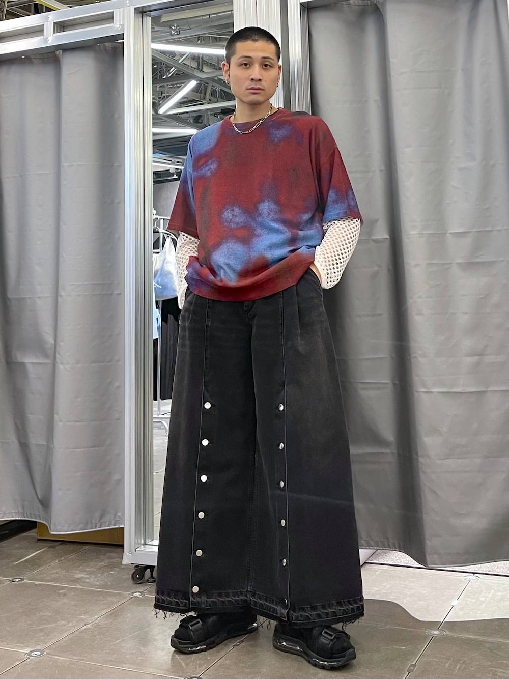 ◉ニット◉ モードなアブストラクト柄なので一枚着で様になる!!✨もちろん春先は長袖シャツやアウターのインナーに使っても👌🏻ニットですが、非常に薄手でチクチクしないのでとても過ごしやすい!! ◉ニット◉ ハイゲージニットでチクチクせず、サラサラな着心地!!フラワーグラフィックがきれいめスタイルにピッタリ!✨一枚着はもちろん、秋冬はシンプルカットソーやメッシュとのレイヤードもおすすめ!! ◉パンツ◉ ヴィンテージ感のある渋いデニムパンツ!!フロントのボタンもアクセントになる!!👌🏻ワイドシルエットで存在感も🙆きれいめスタイルの外しに取り入れるのもおすすめ!!