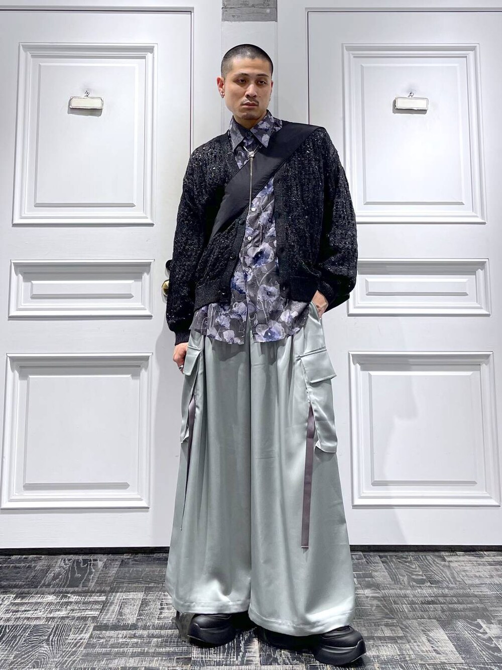 ◉カーディガン◉ これからの季節は欠かせない透かし編みニットカーディガン!!✨光沢感のある糸で、個性的で周りと差別化!!インナーは問わず合わせられてヘビロテ確定👍🏻柄トップスをレイヤードするのもおすすめ!!🔥 ◉シャツ◉ シアー素材で抜け感!今季はメンズでもシアーシャツはマストです!!🫡花柄をあしらっているので、透けすぎずに使いやすい!!インナーをタンクトップにすれば夏でも着用可能!!🔥 ◉パンツ◉ DABOにカーゴパンツ登場!!裾のドローコードでシルエットを変えられる!!でも絞っていない状態でもシルエットがエグいきれいに出ます!オールシーズン使える生地感!!
