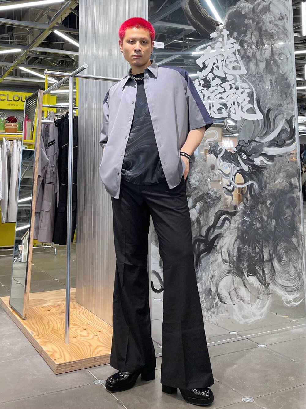 ◉シャツ◉ メッシュを切り替えで付けたスポーティーミックスシャツ!派手すぎないデザインで使いやすい!!✨セットアップでの着用もおすすめ!! ◉カットソー◉ モードスタイリングには欠かせないシアートップス!!お洒落なだけではなく、涼しい、洗濯してもすぐ乾く、一石三鳥!!🦜🦜🦜マーブル柄も強すぎず使いやすい!! ◉パンツ◉ 超美脚パンツ!!かつ脚長効果が間違いないフレアシルエットできれいめスタイルには欠かせないボトムス!!ウエストはストレッチが効く仕様でストレスフリー!🔥