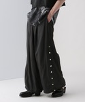 ◉シャツ◉ ざっくりオーバーサイズで一枚着でお洒落!バックスリットが深めに入っているので、レイヤードされている柄のシアーがさりげなく見える!やや張り感がありシルエットが綺麗に強調される! ◉パンツ◉ 袴のような極太シルエット!バスケパンツのようにサイドにスナップボタンが付いており開閉で、シルエットを変化させることができる+柄入りシアー素材が出てくるのでより個性的なスタイルになる!!