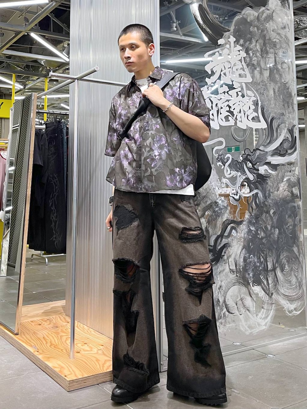 ◉シャツ◉ 軽くて涼しいシアーシャツ!!透け感で夏っぽさも出せて、かつノースリーブや無地Tシャツの上に一枚着るだけでおしゃれになる一石二鳥!!🪨🦜洗濯後のシワを機にする必要もない、すぐ乾く!! ◉カットソー◉ パックプリントと胸元のプリントがちょうど良いアクセントで使いやすい!!シャツやアウターのインナーにも使いやすい!!ポリエステルの柔らかく伸縮性のある生地感で着心地も良く、きれいめな雰囲気を残しつつ着れるカットソー! ◉パンツ◉ ゴテゴテグランジなデニムパンツ!!ややフレアなシルエットがHAREっぽさも出てる!!Tシャツ一枚着合わせやシャツ羽織りのラフな合わせがおすすめ!!