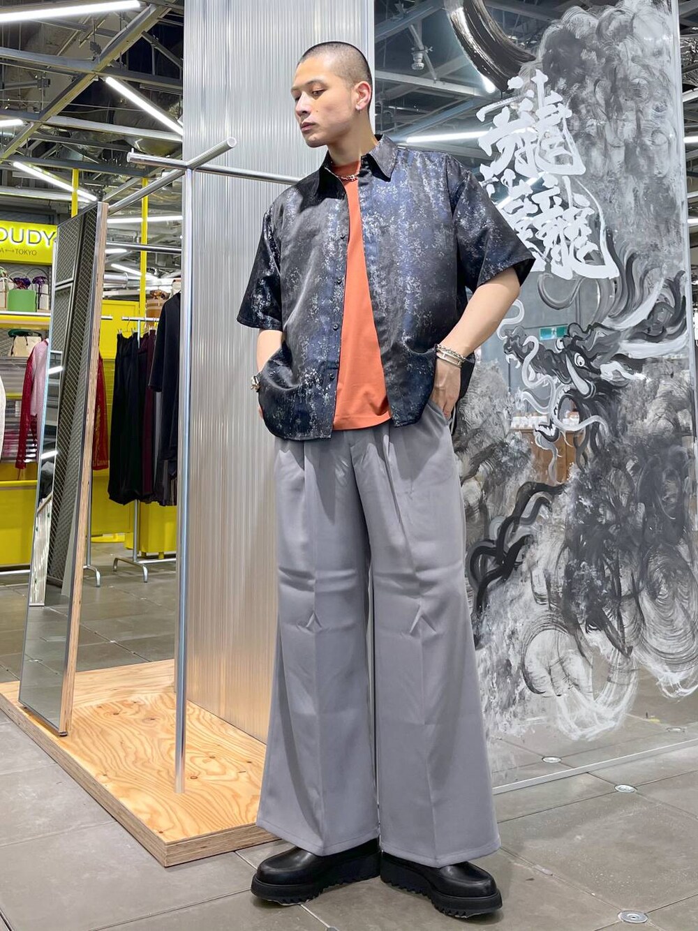 ◉シャツ◉ ラメ入りジャガードシャツ!ジャガード生地でハードな雰囲気を出しつつ、ラメのキラキラ感でフェミニンな印象もプラス!!見た目に反して柔らかい生地で着やすい!! ◉カットソー◉ ミニマムなフラワー刺繍が程よくアクセントになってくれる!!一枚着はもちろん、シャツやカーディガンの無地インナーとしても代用できる汎用性!! ◉パンツ◉ HAREと言えばのトロミ生地!!テロテロで落ち感があり、最高の履き心地!!🤤センタープレスが入っていて、若干フレアシルエットなので美脚効果も発揮!!🔥