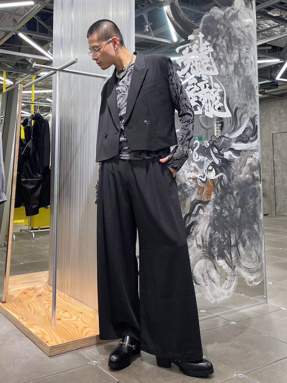◉ベスト◉ 今季トレンドのショート丈ジレベスト!!ワイドパンツで合わせれば脚長効果も👌🏻インナーを変えることで夏〜秋まで支えて、インナー使いすれば真冬も使える万能アイテム!!セットアップのスカパンと合わせるのもおすすめ! ◉カットソー◉ モードスタイリングには欠かせないセカンドスキントップス!一枚着からインナー要員としても超万能!!🔥早めにゲットする事お勧めします!! ◉パンツ◉ 超極太パンツ!!テロテロで落ち感のある生地で着心地も最高!!裾に向かって広がるAラインのシルエットが出るようになっていて、どの角度から見ても形えぐい🔥モードなスタイリングにピッタリ!!