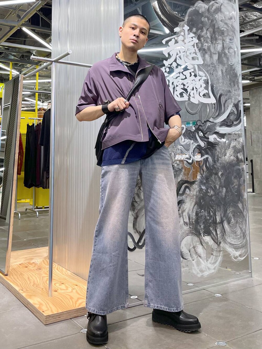◉ブルゾン◉ ミニマムなデザインながらも、トレンドのコンパクトなシルエットが特徴のブルゾン!オーバーサイズですが短丈なのですっきりして、足が長く見えます!!ワイドパンツと合わせるのがおすすめ!! ◉ニット◉ チクチクしない柔らかなサマーニット!!ラメ入りステッチデザインでトレンド要素もバッチリ!👌🏻一枚着で様になるので、真夏は重宝するちょうど良いデザイン!! ◉パンツ◉ 個性的なカラバリデニムパンツ!!通年で使えるアイテム!!フレアシルエットで脚長効果もあり🔥トップス次第で雰囲気もガラッと変わるので幅広いスタイリングが組める!!