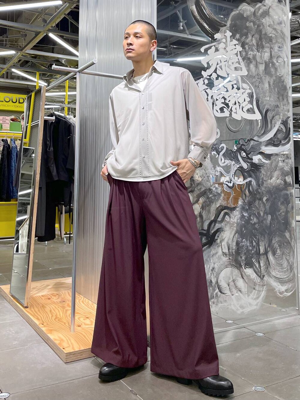 ◉シャツ◉ シルバーパーツが程よいアクセントになってくれるちょいデザインシャツ!夏からでも涼しく着れるシアーシャツ!メンズでもシアーが浸透してきているからこそ、周りと差をつけたい方はぜひ! ◉パンツ◉ 大人気DABOシリーズから、プリーツ素材バージョン登場!伸縮性があり、サラッと着れるので暑い時期から重宝するワイドパンツ!!シルエットだけでなく素材感でも他と差別化できる!!セットアップでの着用もおすすめです!!