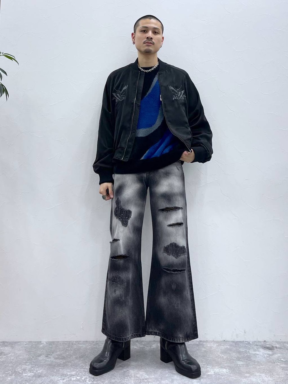 ◉ブルゾン◉ アメカジ、カジュアル、きれいめの外しにまで様々なスタイリングにピッタリのブルゾン!!光沢感のある生地と見頃の刺繍が高見え間違い無し!!!✨ ◉ニット◉ カラーによって柄が違うデザインニット!マーブルもフラワーも派手すぎない使いやすい柄がデザインされてます!!秋はこれの一枚着でも決まりすぎちゃう!!毛玉になりにくく長く使えるのもポイント👌🏻 ◉パンツ◉ ブリーチ加工とダメージ加工を詰め込んだ個性派デニムパンツ!トレンドのデニムパンツだからこそ周りと差別化したいならこれ!!