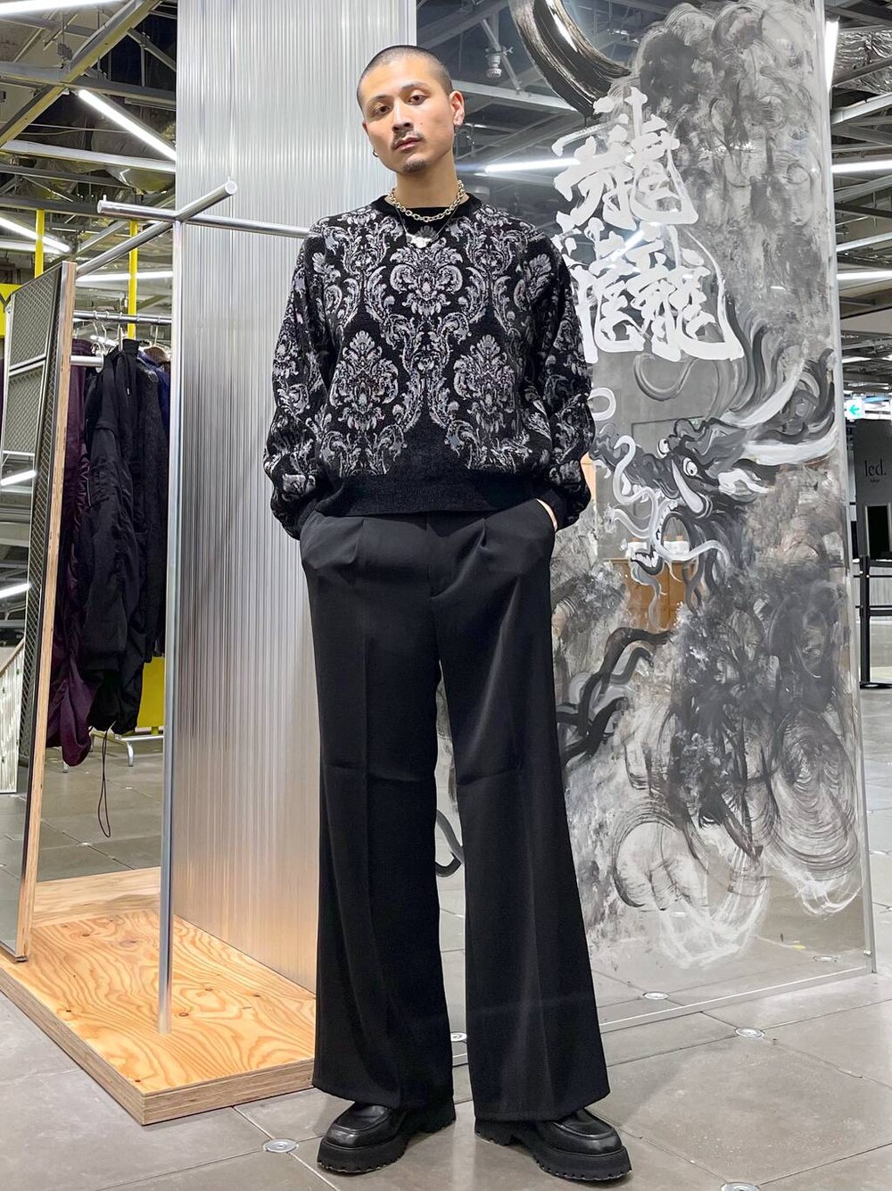 ◉ニット◉ HAREで毎シーズン大人気のモールニットプルオーバー!柔らかくチクチクしない、毛玉になりにくく手入れもしやすいニットです!✨ダマスク柄で大人っぽく、渋さのあるスタイリングに! ◉パンツ◉ HAREと言えばのトロミ生地!!テロテロで落ち感があり、最高の履き心地!!🤤センタープレスが入っていて、若干フレアシルエットなので美脚効果も発揮!!🔥