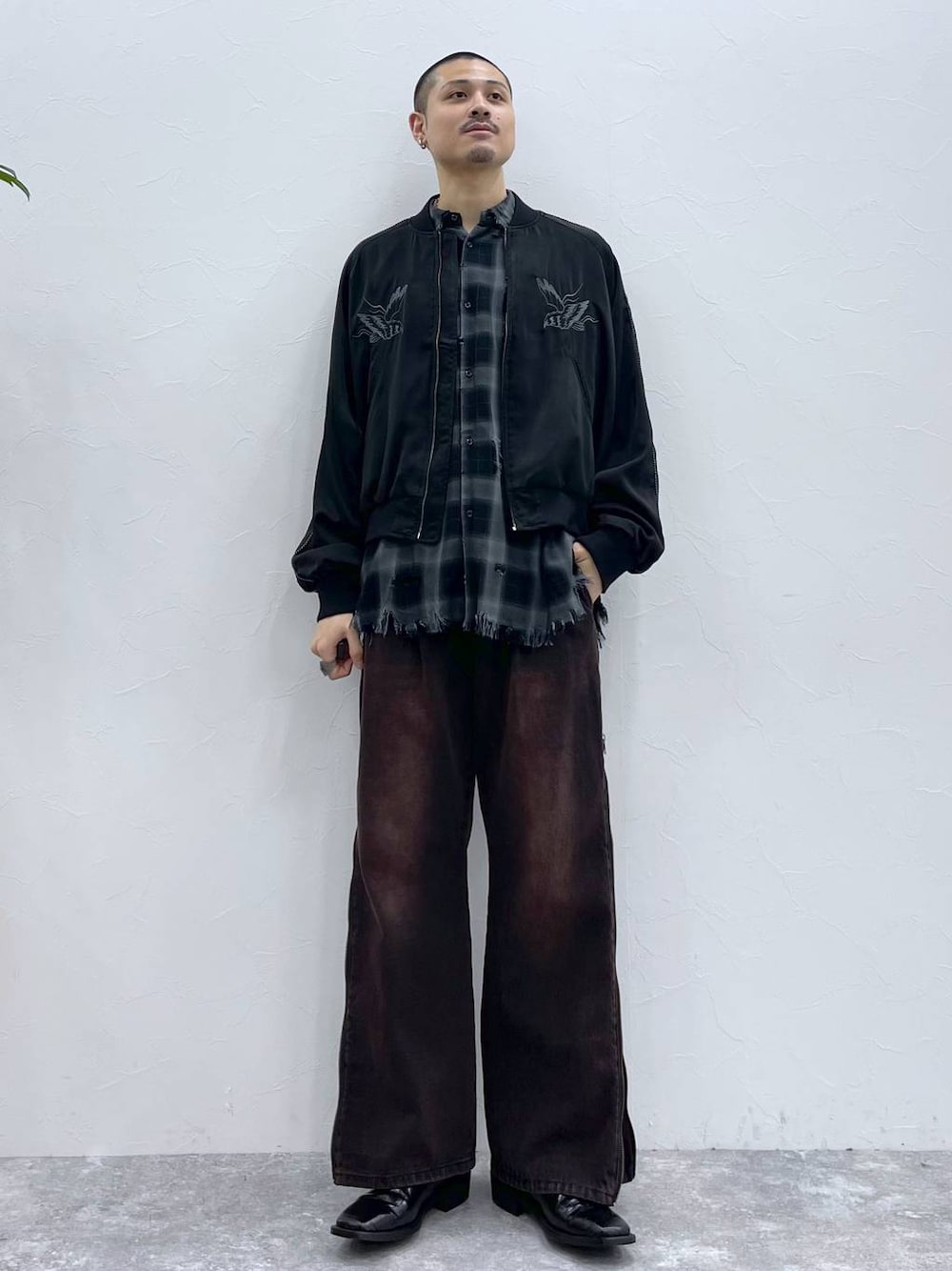 ◉ブルゾン◉ アメカジ、カジュアル、きれいめの外しにまで様々なスタイリングにピッタリのブルゾン!!光沢感のある生地と見頃の刺繍が高見え間違い無し!!!✨ ◉シャツ◉ モードカジュアルに着れるダメージチェックシャツ!薄くて軽い素材で、夏ギリギリまでいけそう!😎着丈や袖丈がやや長めなので、春先はアウターとのレイヤードスタイルがおしゃれになる! ◉パンツ◉ HAREらしいデザインデニム!!サイドのジップを開ける事でシルエットを調節できるかつ、フリンジデザインを魅せる事もできる!!夏はトップスがどシンプルになる方はデザインボトムスを取り入れましょう!!💪🏻