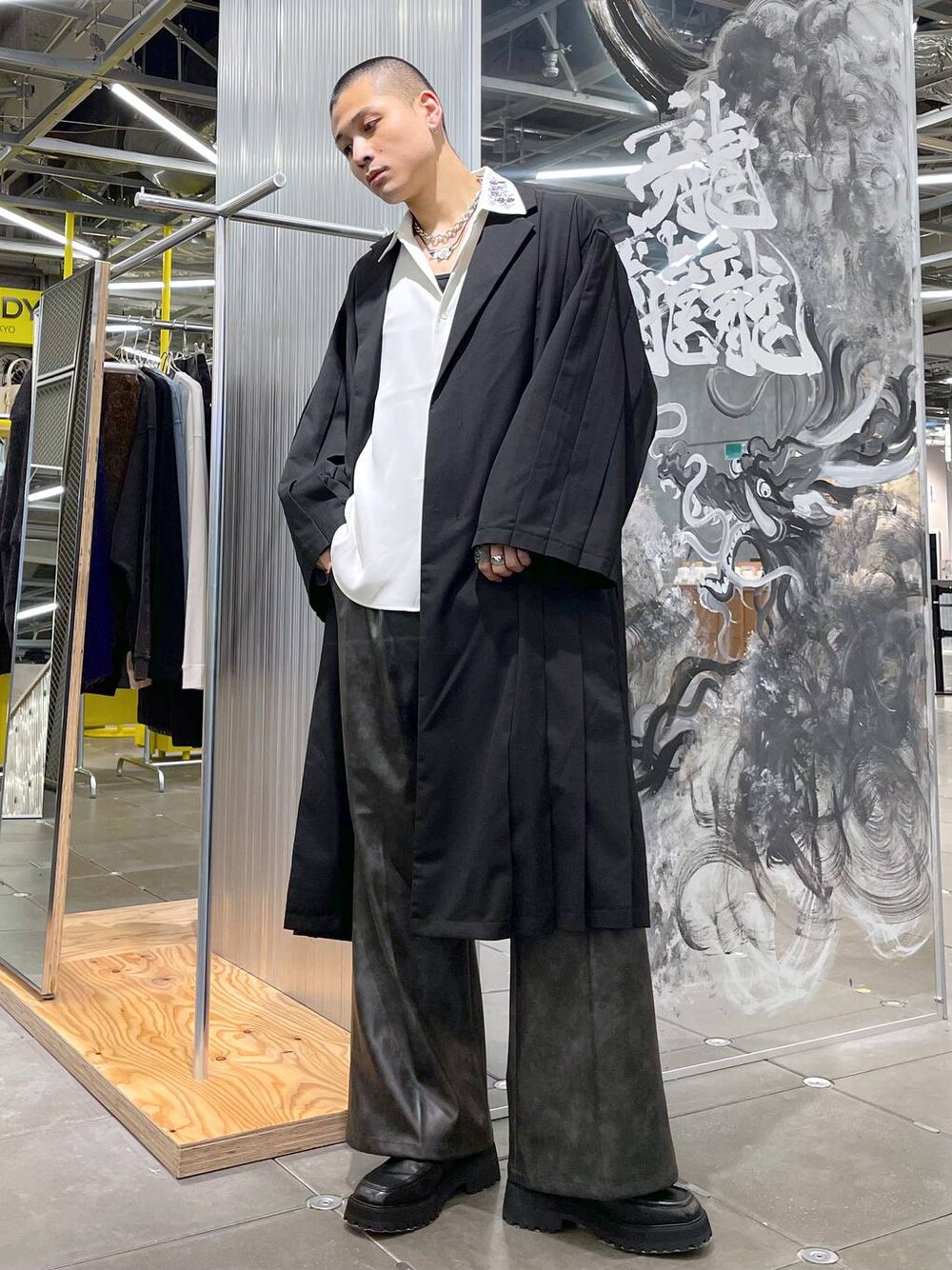 ◉ロングコート◉ YOSEシリーズのロングコート!和モード感溢れるプリーツデザインがたまらない!!プリーツ加工のおかげで躍動感のある動きが出ます!!厚すぎない生地感で春先まで使える!ベルトでウエストマークするのオススメです👍🏻 ◉シャツ◉ TOROMIシャツの刺繍入りバージョン!安定の涼しい、すぐ乾く、シワになりにくい、最高のシャツ!袖と襟に刺繍が入っているので、インナーに使っても個性を潰さずにオシャレにレイヤードできます!✨ ◉パンツ◉ 定番のレザーパンツ!!ややフレアのようなシルエットで美脚、脚長効果!!風を一切通さないのでお洒落なだけではなく、防寒性にも優れているので、一本以上は持っておくのをおすすめします!👍🏻