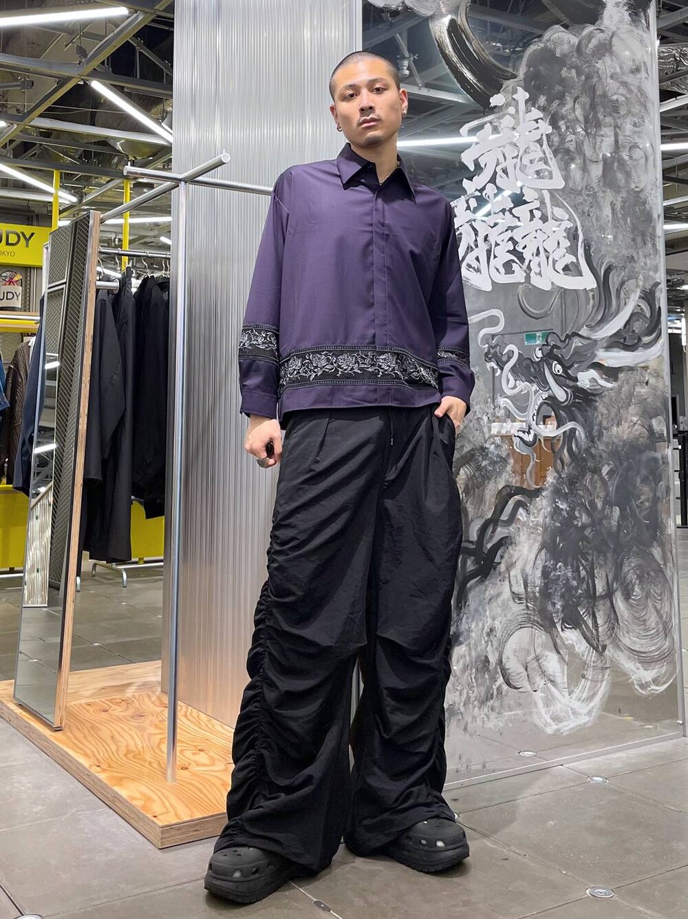 ◉シャツ◉ 刺繍とシアー、定番を個性派アイテムに昇華させたデザインシャツ!!刺繍の雰囲気がきれいめなスタイルにピッタリ✨一枚着や今の時期の羽織りスタイルはもちろん、短丈のジャケットやベストで合わせるのもおすすめ!💪🏻 ◉パンツ◉ ギャザーデザインでボリュームの出る個性派ボトムス!!👌🏻✨クリーンなスタイルの外しで使ってもおしゃれ!!裾を絞ってハイカットシューズと合わせても🫶🏻セットアップでの着用もおすすめ!!