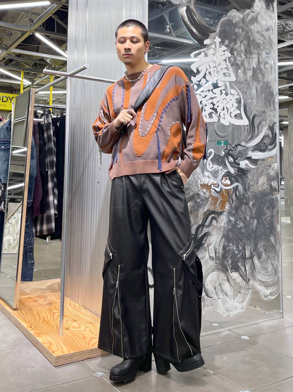 ◉ニット◉ 一枚着でも決まりすぎちゃうデザインニットプルオーバー!!派手すぎないマーブル柄とステッチデザインで使いやすい!厚すぎないニットで春先まで着れる生地感です!!👌🏻 ◉パンツ◉ ジップとベルトが個性的なカーゴパンツ!モードできれいめなフェイクレザー(08)とTR素材(09)でHAREらしさ全開!!黒系で合わせやすい上に他のボトムスと差別化しやすいからマンネリ感じてるならコレ!!