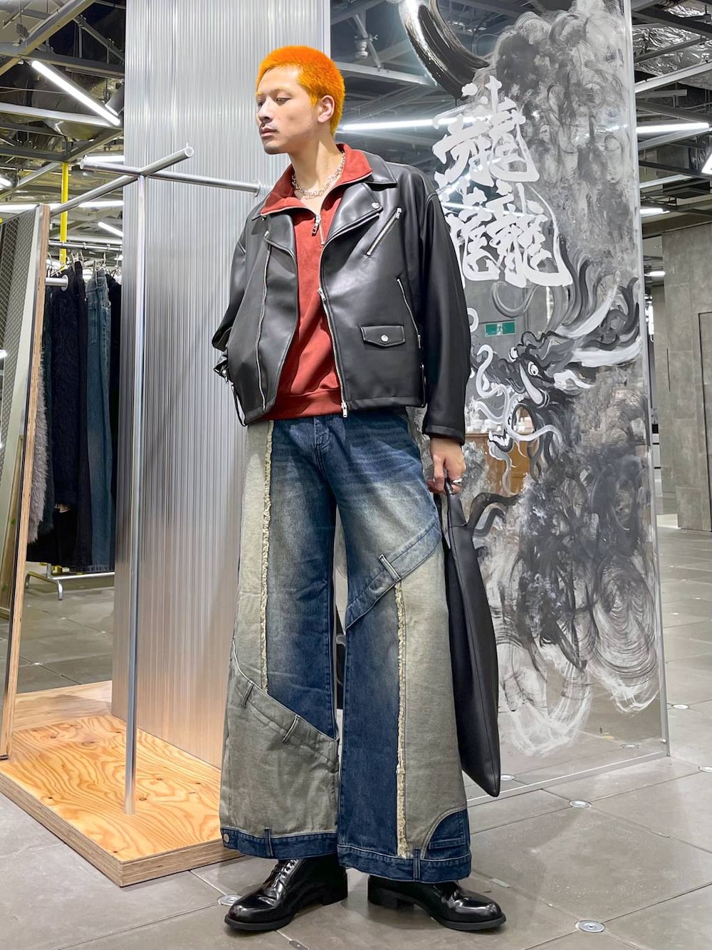 ◉ブルゾン◉ 秋冬定番のライダースジャケット!パンクでハードなイメージが強いですが、きれいめなスタイルにプラスしてもかっこいい!オーバーサイズなのでインナーも着込みやすく使いやすい! ◉スウェット◉ 肌触りが良く、季節感を出せるフェイクスウェード生地!普段使いがしやすく、zipの開け具合でレイヤードスタイルを楽しめる!完全に閉めてハイネックにすればマフラー要らず!! ◉パンツ◉ リメイクライクなデザインデニムパンツ!!デニムパンツを解体し、再構築したような個性的なデザインで、周りと差別化できる!!✨ややフレアのようなシルエットで美脚効果も🫶🏻トップスがシンプルでも主役を張れるのでこれからの時期にもピッタリ!
