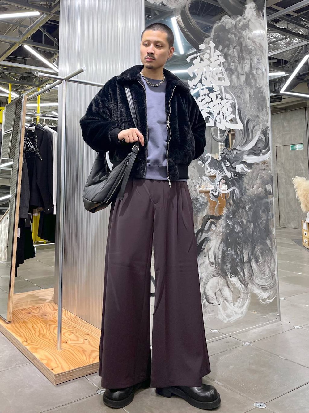 ◉ブルゾン◉ 高見えするファーブルゾン!着丈が短くコンパクトなサイズ感、裾にはリブがついているのでくびれができて脚長効果🙆🏻アダルティな色気が出るアイテム!!スラックスを合わせて大人っぽく、デニムを合わせてカジュアルミックス、色々幅広なスタイルが可能です!! ◉スウェット◉ HAREタグと刺繍をワンポイントであしらったシンプルスウェット!一枚着〜インナートップスとして使える万能アイテム!裾のリブが効いていて、コンパクトなシルエットでトレンド感👍🏻 ◉パンツ◉ 超極太パンツ!!テロテロで落ち感のある生地で着心地も最高!!シルバーはシャカシャカでくっきりシルエットが出る素材感!裾に向かって広がるAラインのシルエットが出るようになっていて、どの角度から見ても形えぐい🔥モードなスタイリングにピッタリ!!