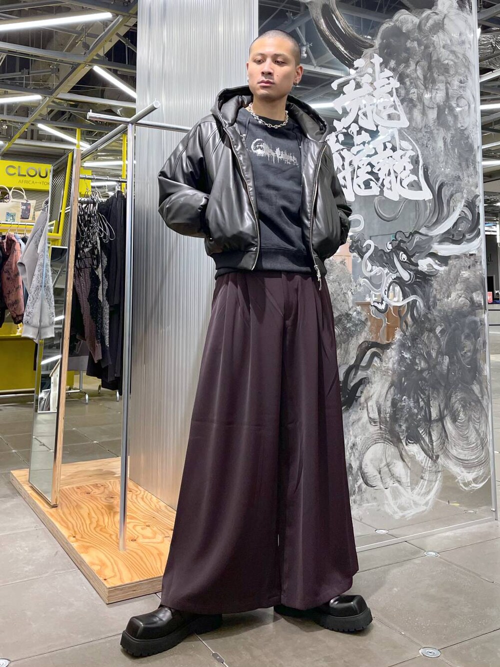 ◉ブルゾン◉ フードデザインかつレザー素材でカジュアルもきれいめも汎用性高く対応してくれる万能ブルゾン!中綿が入っていてより保温性🙆🏻♂️コンパクトなシルエットでトレンド感もある!身幅はゆるく作られているので中にも着込みやすい! ◉スウェット◉ コンパクトなサイズ感にヴィンテージライクな風合いがトレンド感満載🔥ワイドパンツと合わせればAラインのシルエットでスタイリングできてスタイルアップ!!⬆️モードなグラフィック・リベットがアクセントに!! ◉パンツ◉ 超極太パンツ!!テロテロで落ち感のある生地で着心地も最高!!シルバーはシャカシャカでくっきりシルエットが出る素材感!裾に向かって広がるAラインのシルエットが出るようになっていて、どの角度から見ても形えぐい🔥モードなスタイリングにピッタリ!!