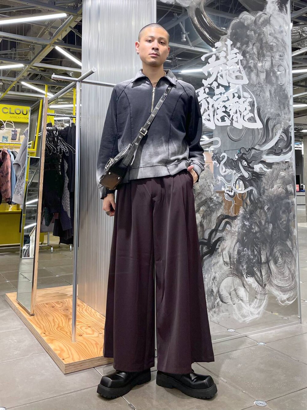 ◉スウェット◉ グラデーションにブリーチされた個性的なハーフジップスウェット!リメイクアイテムのような切り替えデザインが映える!!一枚着で様になるので、楽におしゃれが楽しめる!! ◉パンツ◉ 超極太パンツ!!テロテロで落ち感のある生地で着心地も最高!!シルバーはシャカシャカでくっきりシルエットが出る素材感!裾に向かって広がるAラインのシルエットが出るようになっていて、どの角度から見ても形えぐい🔥モードなスタイリングにピッタリ!!