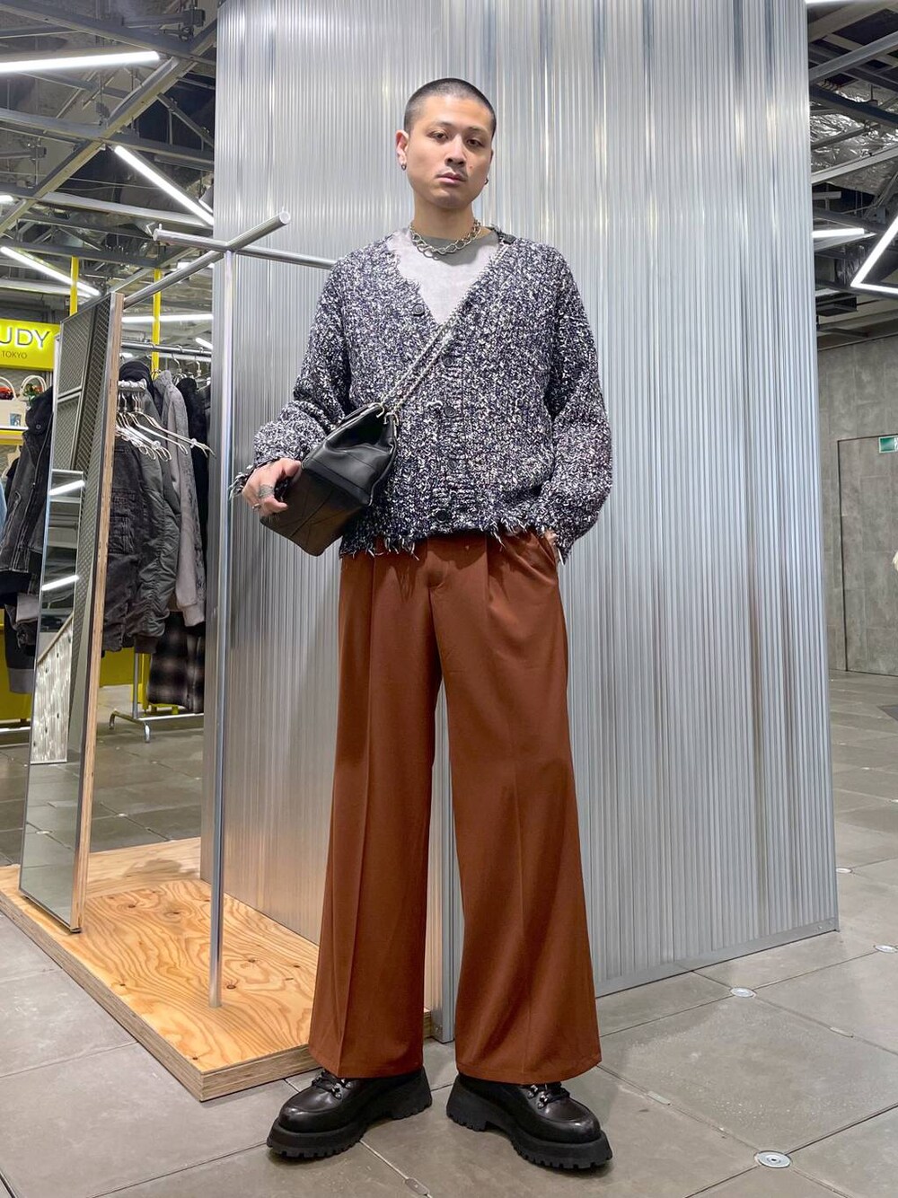 ◉カーディガン◉ メランジニットで凹凸感が特徴のニットカーディガン!ラメ糸も入っており、中性的な雰囲気が出る上に、ダメージデザインを用いて、グランジな雰囲気もプラス!!様々なスタイルに対応可能!!✨ ◉スウェット◉ 着心地も間違いないマットなフェイクスウェード生地!着丈が短くコンパクトなシルエットで今季トレンドの形!インナーにも使いやすく、汎用性の高いスウェットです!! ◉パンツ◉ HAREの新定番「OTOMO」シリーズ!普段使いしやすく、カジュアル〜きれいめまで様々なトップスやアウターのお供になってくれる汎用性抜群なボトムス!!シンプルデザインだけどシルエット最高!!シックなカラーから爽やかなカラーまであるのでお好みで選びやすい!