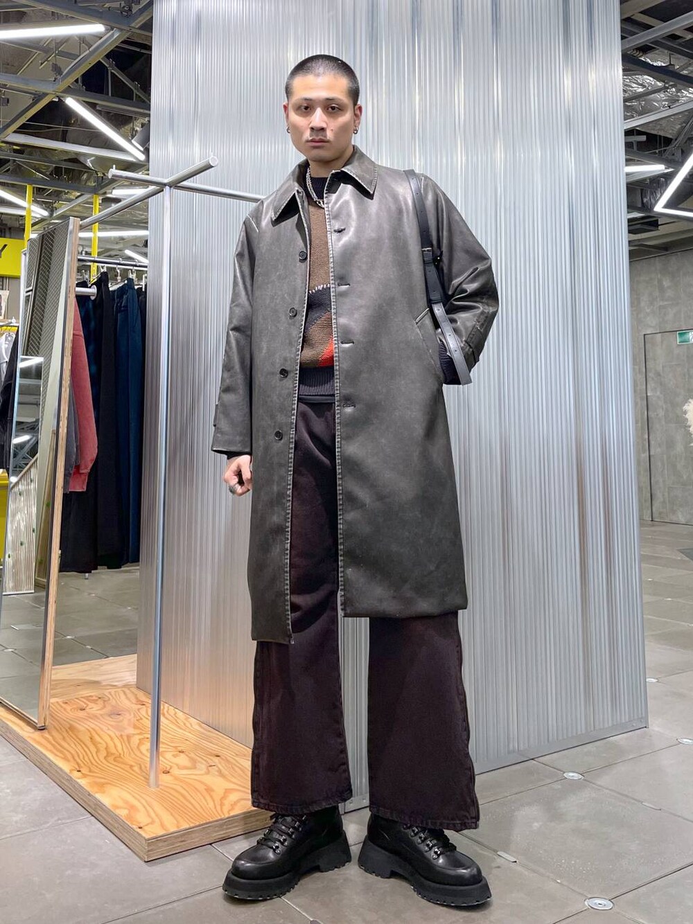 ◉ロングコート◉ フェイクレザー素材のロングコートで防寒性🙆🏻♂️独特なヴィンテージ感のあるデザインでこれ一枚羽織れば洒落る!!トレンド関係なく長く使える便利なロングコートです!!🔥 ◉ニット◉ 切り替えでデザインとステッチデザインが程よくアクセントになるデザインニットプルオーバー!!柄が苦手な方でもスタイリングに馴染みやすく使いやすいデザインになっています!暑くなるまで長く使える生地感です! ◉パンツ◉ HAREらしいデザインデニム!!サイドのジップを開ける事でシルエットをワイドやスリム、フレアシルエットなど形を調節できる!✨トップスがどシンプルになる方はデザインボトムスを取り入れましょう!!💪🏻
