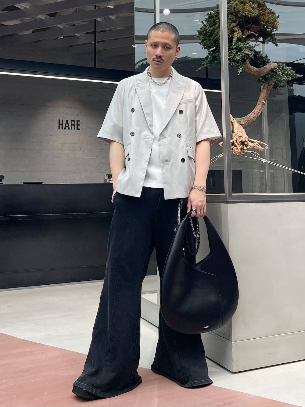 はのやん(HAREルミネエスト)のトートバッグ「サークルコンビトート(HARE)」を使ったコーディネート