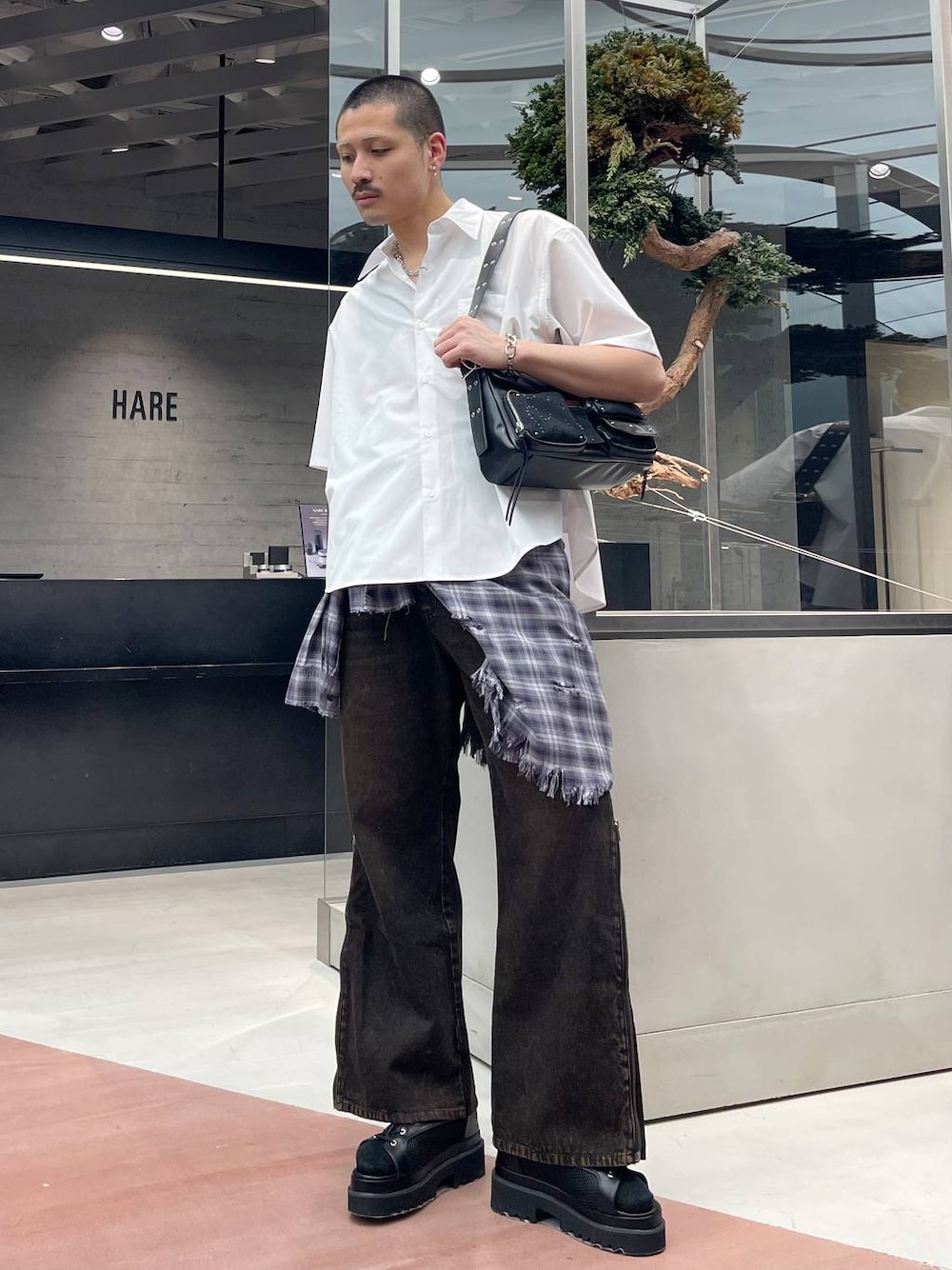 はのやん(HAREルミネエスト)のシャツ/ブラウス「【一部カラーSET UP対応】BIGダメージチェックシャツ(HARE)」を使ったコーディネート