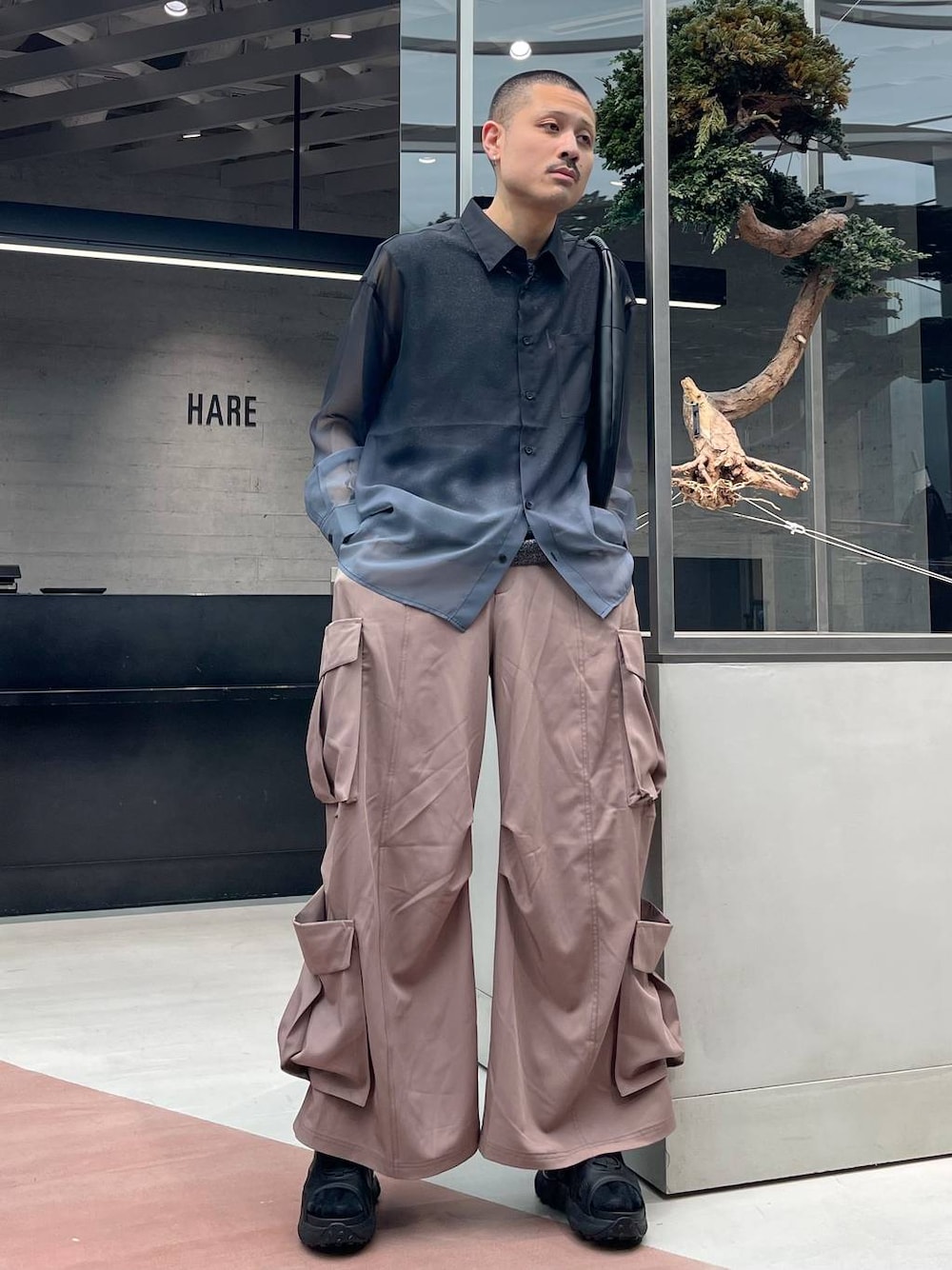 ◉シャツ◉ グラデーションデザインでお洒落と通気性を両立させたシアーシャツ!!柄シャツほど派手でも無いですが、シンプルなスタイルにこれ一着プラスすれば変化をつけやすい!!結構透け感が強いので、インナーに柄物やデザイン物を入れてもお洒落!! ◉パンツ◉ モードスタイリングにピッタリなカーゴパンツ!🖤ポケットが大きめでアクセントになる!!とても柔らかい生地感で、履き心地も良い!!🤤