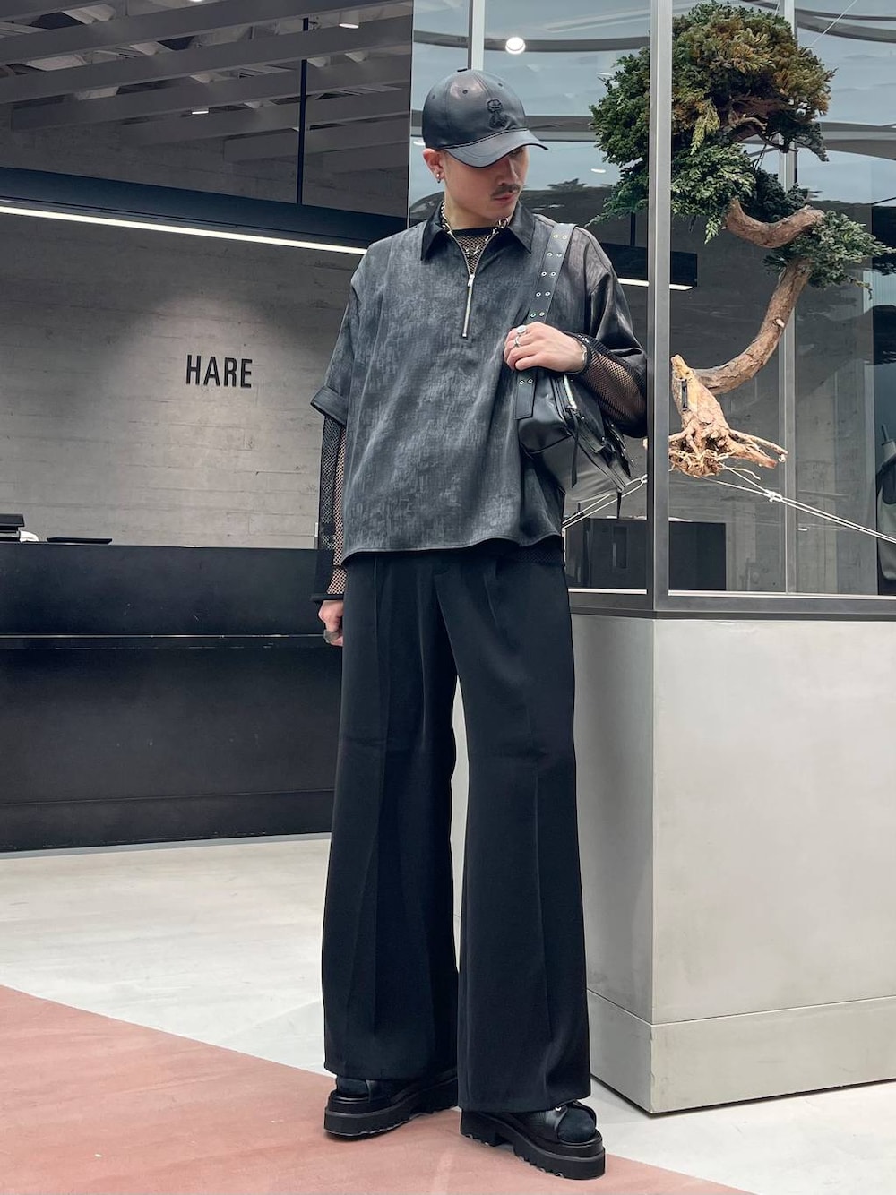 ◉シャツ◉ ハーフジップですが、滑らかで柔らかいきれいめな素材感でカジュアル過ぎず、程よくクリーンなスタイルにミックスしやすいデザイン!!袖口がワイドでさりげないデザイン!!使いやすくヘビロテできちゃう!! ◉メッシュカットソー◉ 春夏では重宝するメッシュ!インナーには柄のアイテムを入れるのもおすすめ!!安定のブラック・ホワイトに、個性的なレッド•ブルーもあるので、周りと差別化!!✨コスパが良いので、色違いで複数持ちアリ!!🐜 ◉パンツ◉ HAREと言えばのトロミ生地!!テロテロで落ち感があり、最高の履き心地!!🤤センタープレスが入っていて、若干フレアシルエットなので美脚効果も発揮!!🔥
