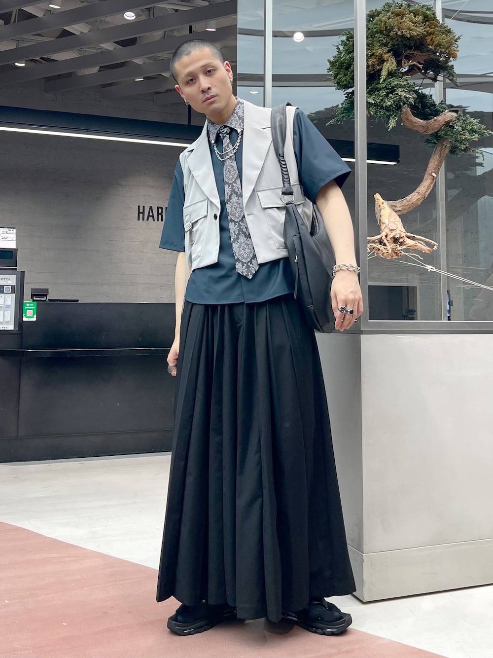 ◉ベスト◉ 超ショート丈きれいめ×カジュアルなデザインベスト!ショート丈だから脚長効果◎!ポケットデザインがカジュアルやミリタリーな雰囲気も出してくれて色々なインナー・ボトムスと合わせやすい! ◉シャツ◉ 今季もトレンドのネクタイ!元々シャツとセットなのでもちろん一緒に使ってもよし、外して各々単体で使ってもよし、マルチウェイで使える!!見頃は無地なので柄のバランスが良くつかいやすい!! ◉パンツ◉ HAREの大人気シリーズ「YOSE」!!和モードなプリーツデザインがたまらない!!袴のようなディテールでシンプルになりやすい春夏のスタイリングにアクセントをつけてくれる!🔥かつデザインだけではなく、ワイドなので通気性もよく意外と快適!!✨