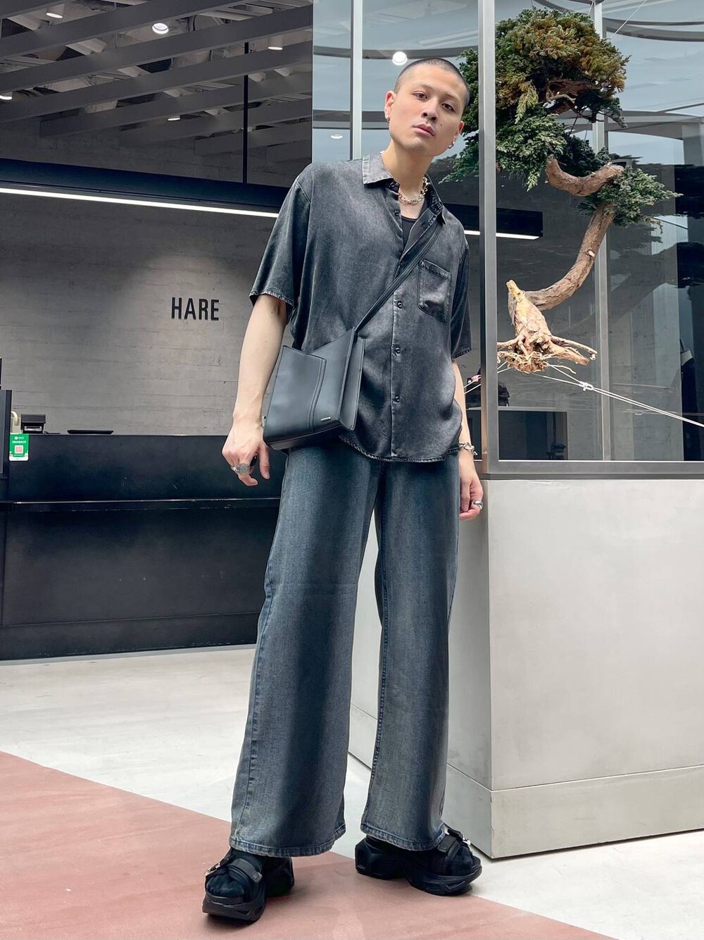 ◉シャツ◉ レーヨン100%で光沢感とドレープ感が特徴のピグメント加工シャツ!!肌触りが特に良くて、ストレスフリー!!ざっくりオーバーサイズで一枚でもサマになる楽なアイテムです!! ◉パンツ◉ 夏向けの薄手のデニムなので夏でも快適にはける!独特なブリーチ加工で周囲と差別化が可能!!モードなスタイリングにも馴染みやすく、幅広い系統に使えるデニムパンツ!!