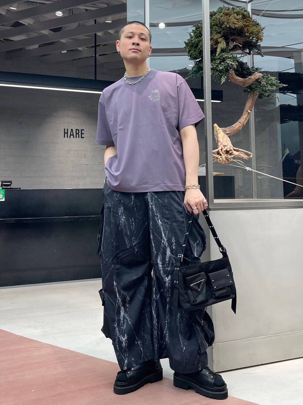 ◉カットソー◉ パックプリントと胸元のプリントがちょうど良いアクセントで使いやすい!!シャツやアウターのインナーにも使いやすい!!ポンチ生地で柔らかく伸縮性のある生地感で着心地も良く、きれいめな雰囲気を残しつつ着れるカットソー! ◉パンツ◉ モードスタイリングにピッタリなカーゴパンツ!🖤ポケットが大きめでアクセントになる!!モードで独特なシルエットでカジュアルスタイルだけではなく、ハレっぽいスタイルにも対応可能!!!とても柔らかい生地感で、履き心地も良い!!🤤