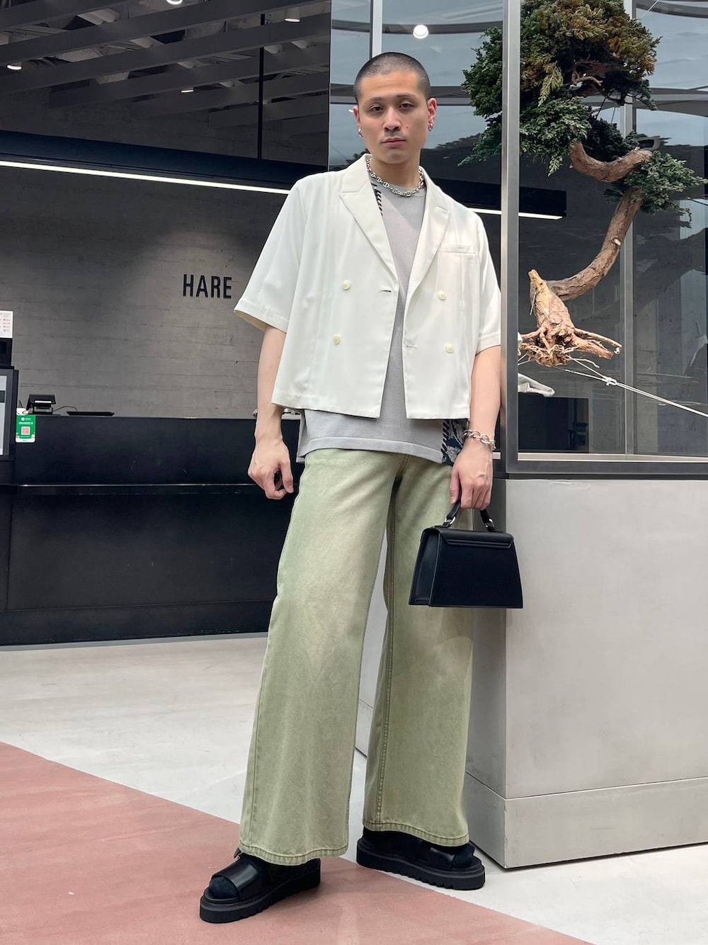 ◉ジャケット◉ ショート丈が特徴の半袖テーラードジャケット!!春夏のトップスのバリエーションを増やすにはもってこい!夏でもテーラードジャケット着れるのは激アツ🔥ワイドパンツと合わせるのおすすめ!! ◉ニット◉ テロっとしたサマーニット!リメイク古着のような雰囲気があってパッチワーク状に柄を切り替えて使っているので、程よくスタイルにアクセントをつけられるトップスです! ◉パンツ◉ 個性的なカラバリデニムパンツ!!さらにヴィンテージのような色が抜けた加工がされていて、アクセントに!!通年で使えるアイテム!!フレアシルエットで脚長効果もあり🔥トップス次第で雰囲気もガラッと変わるので幅広いスタイリングがくめる!