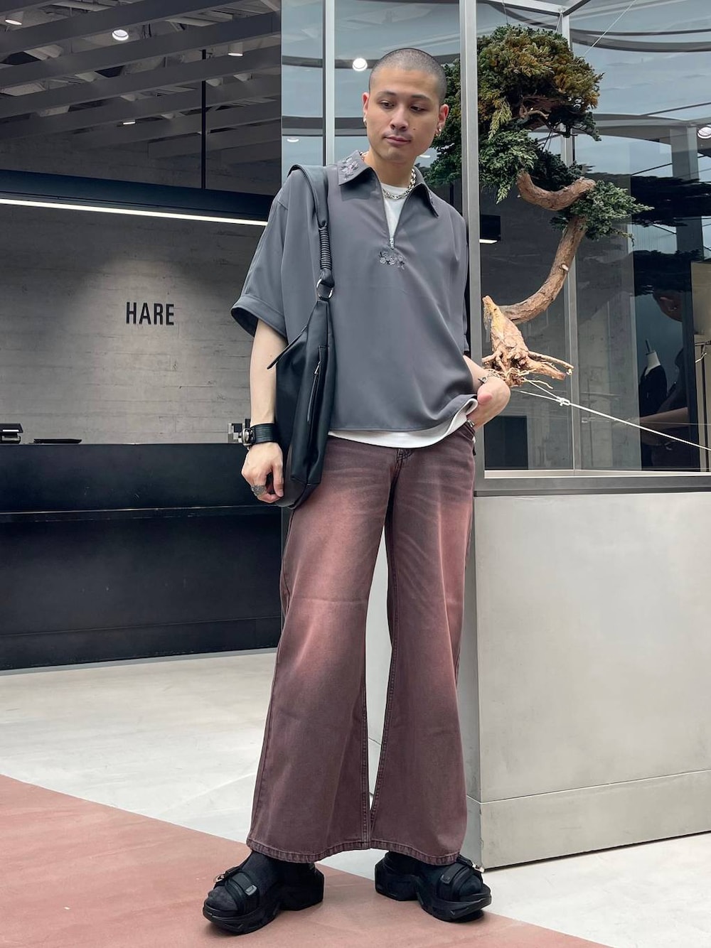 ◉シャツ◉ HAREの大定番刺繍シャツにハーフジップシャツバージョン登場!!きれいめとカジュアルのいい塩梅!!春夏の一枚着のバリエーションにおすすめ!!🌸 ◉パンツ◉ 個性的なカラバリデニムパンツ!!さらにヴィンテージのような色が抜けた加工がされていて、アクセントに!!通年で使えるアイテム!!フレアシルエットで脚長効果もあり🔥トップス次第で雰囲気もガラッと変わるので幅広いスタイリングがくめる!