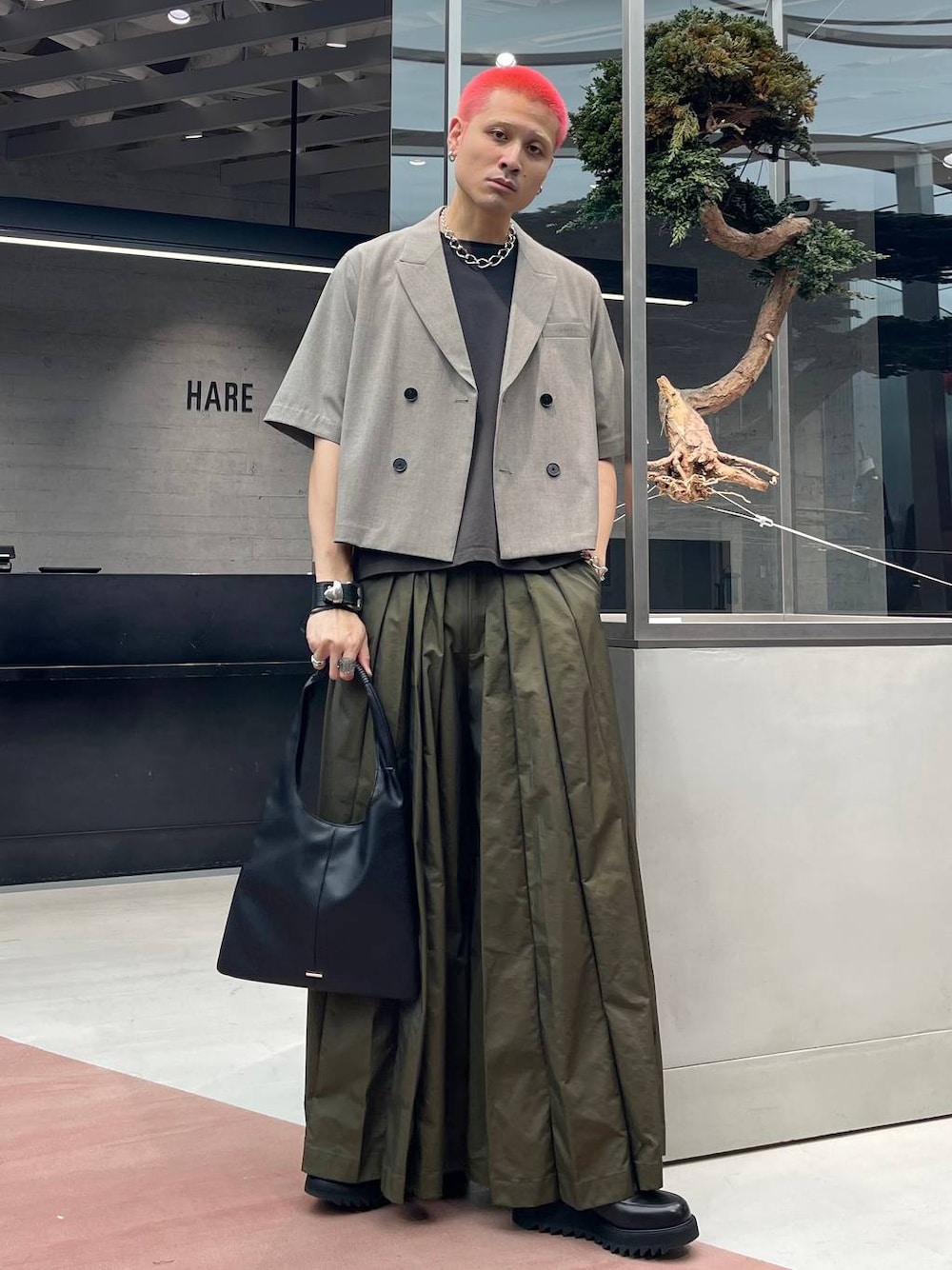 ◉ジャケット◉ ショート丈が特徴の半袖テーラードジャケット!!春夏のトップスのバリエーションを増やすにはもってこい!夏でもテーラードジャケット着れるのは激アツ🔥メランジでシンプル過ぎず、派手すぎないちょうど良いデザイン!ワイドパンツと合わせるのおすすめ!! ◉カットソー◉ グラデーションデザインが程よく違いを出してくれる!コントラスト控えめなグラデーションなので派手すぎなくて使いやすい!やや肉厚な生地でしっかりとした印象です! ◉パンツ◉ HAREの大人気シリーズ「YOSE」!!和モードなプリーツデザインがたまらない!!袴のようなディテールでシンプルになりやすい春夏のスタイリングにアクセントをつけてくれる!🔥かつデザインだけではなく、ワイドなので通気性もよく意外と快適!!✨